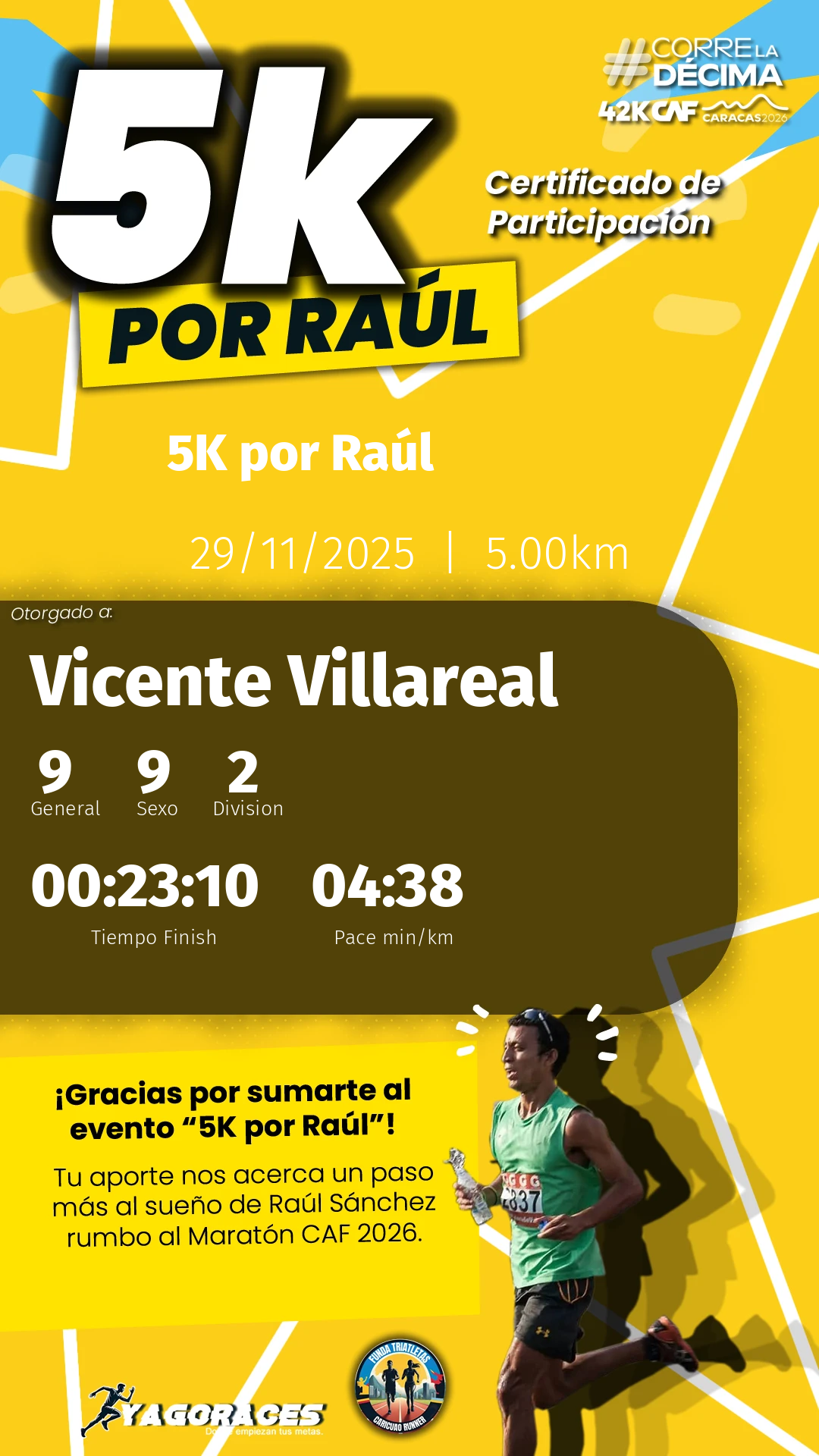 Tu esfuerzo, dedicación y espíritu son lo que hace cada evento único y memorable. Nos llena de orgullo contar con atletas como tú, que inspiran con cada paso. Esperamos que hayas disfrutado tanto como nosotros organizando este encuentro.