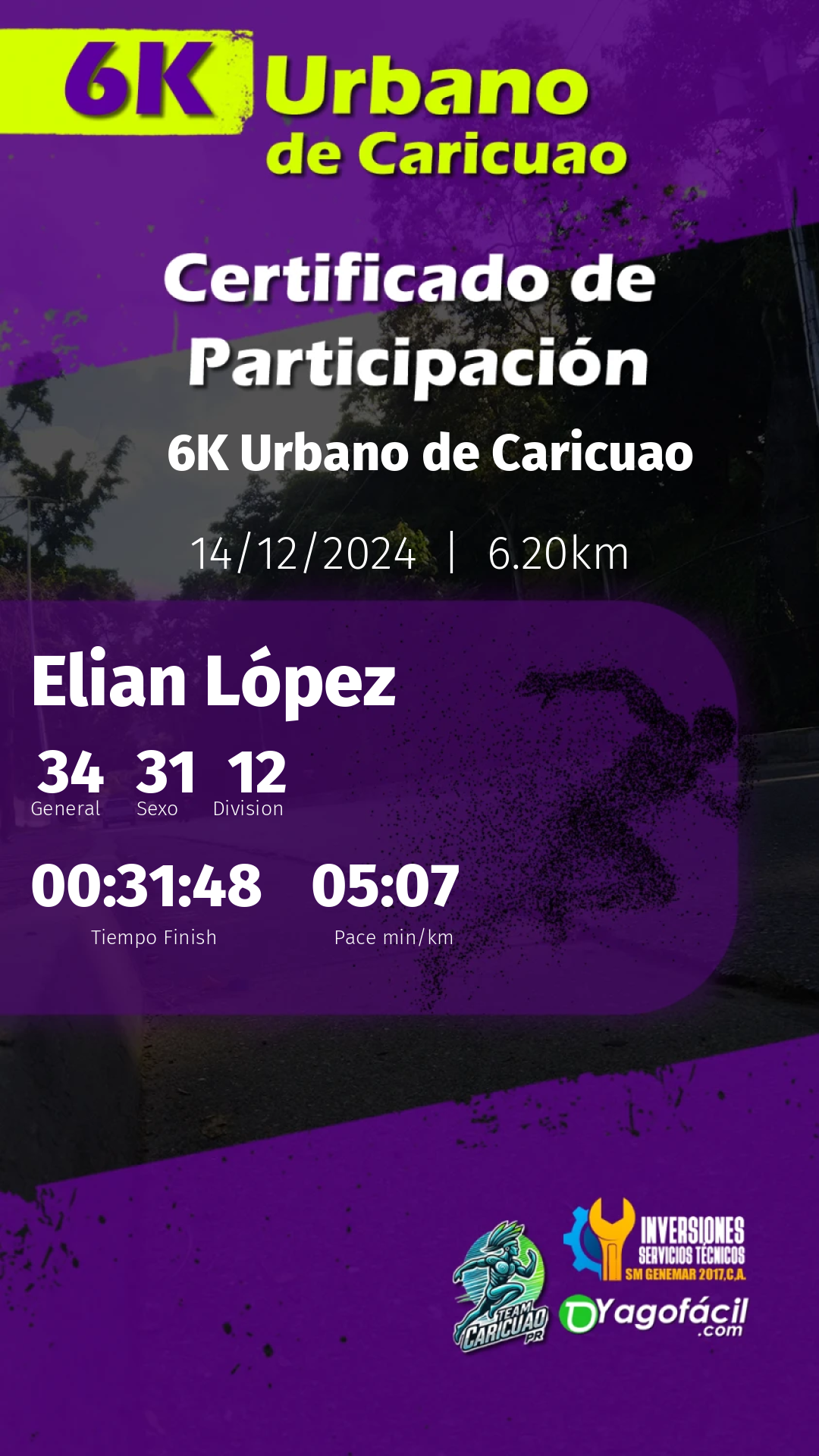 Tu esfuerzo, dedicación y espíritu son lo que hace cada evento único y memorable. Nos llena de orgullo contar con atletas como tú, que inspiran con cada paso. Esperamos que hayas disfrutado tanto como nosotros organizando este encuentro.