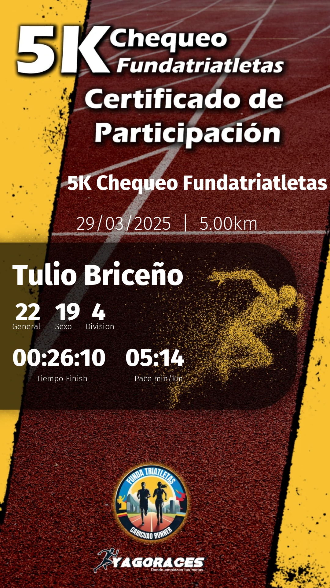 Tu esfuerzo, dedicación y espíritu son lo que hace cada evento único y memorable. Nos llena de orgullo contar con atletas como tú, que inspiran con cada paso. Esperamos que hayas disfrutado tanto como nosotros organizando este encuentro.
