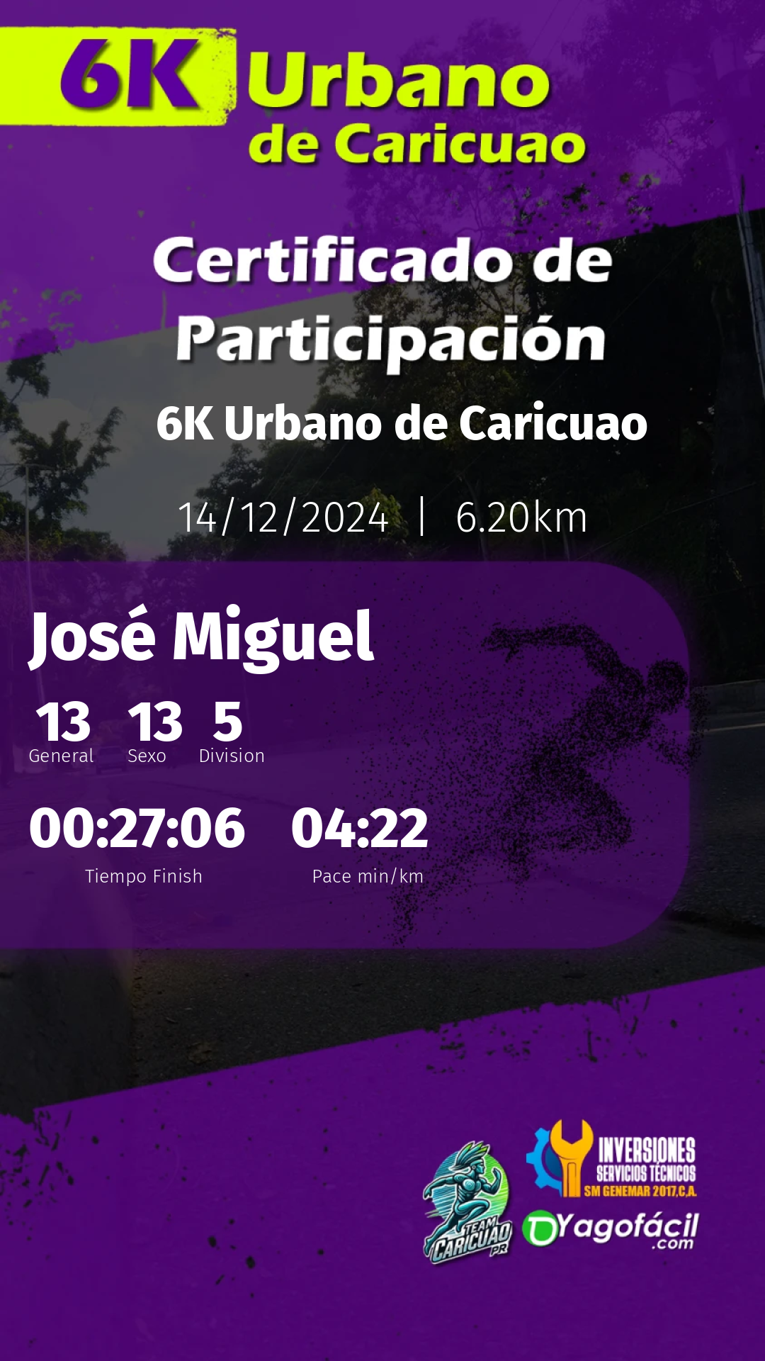 Tu esfuerzo, dedicación y espíritu son lo que hace cada evento único y memorable. Nos llena de orgullo contar con atletas como tú, que inspiran con cada paso. Esperamos que hayas disfrutado tanto como nosotros organizando este encuentro.