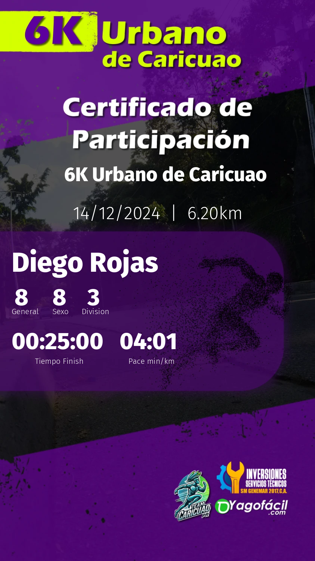 Tu esfuerzo, dedicación y espíritu son lo que hace cada evento único y memorable. Nos llena de orgullo contar con atletas como tú, que inspiran con cada paso. Esperamos que hayas disfrutado tanto como nosotros organizando este encuentro.